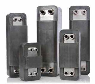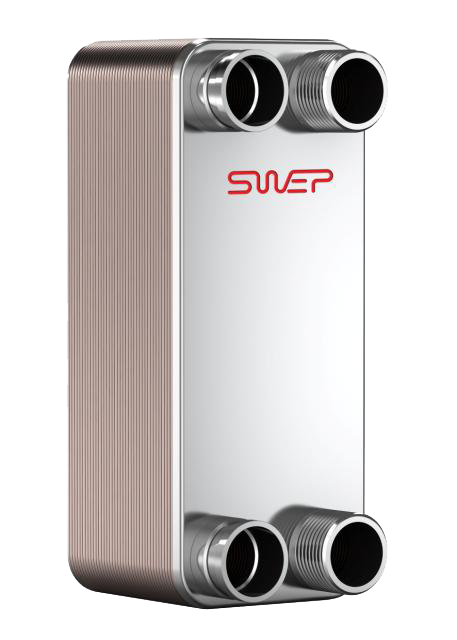 Plattenwärmetauscher in gelöteter Ausführung, standardmässig mit Kupferlot, in kompakter Bauweise.